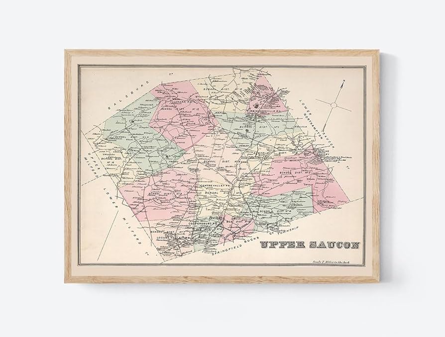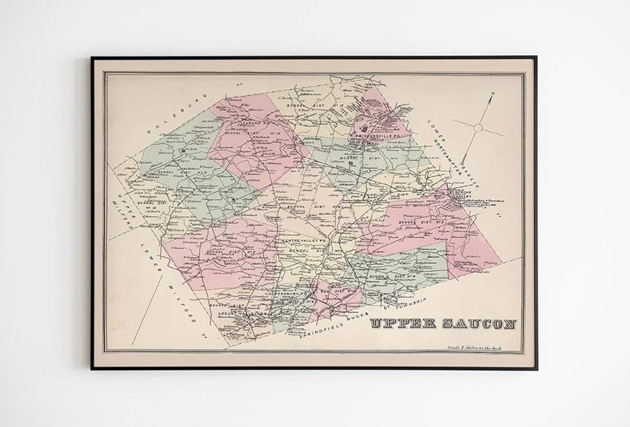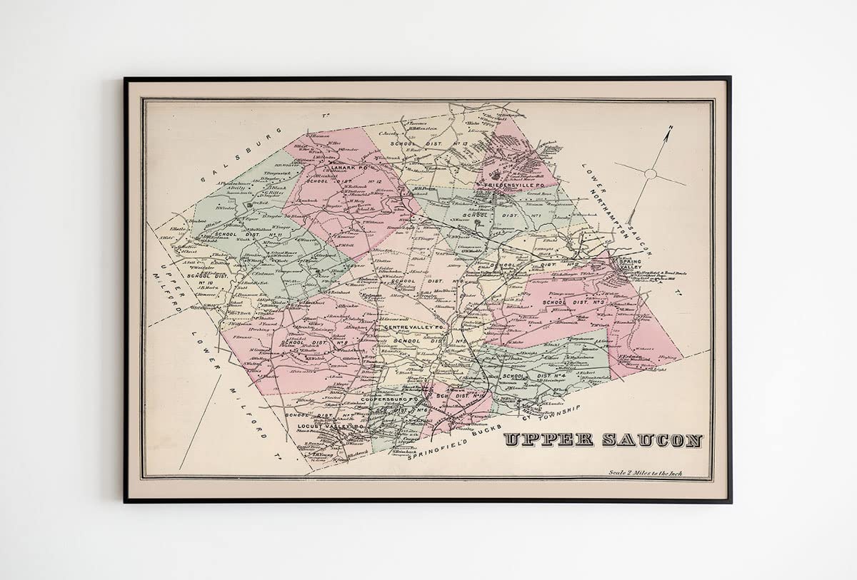 Amazon.com: Old Map Poster of 1876 map of Upper saucon Township